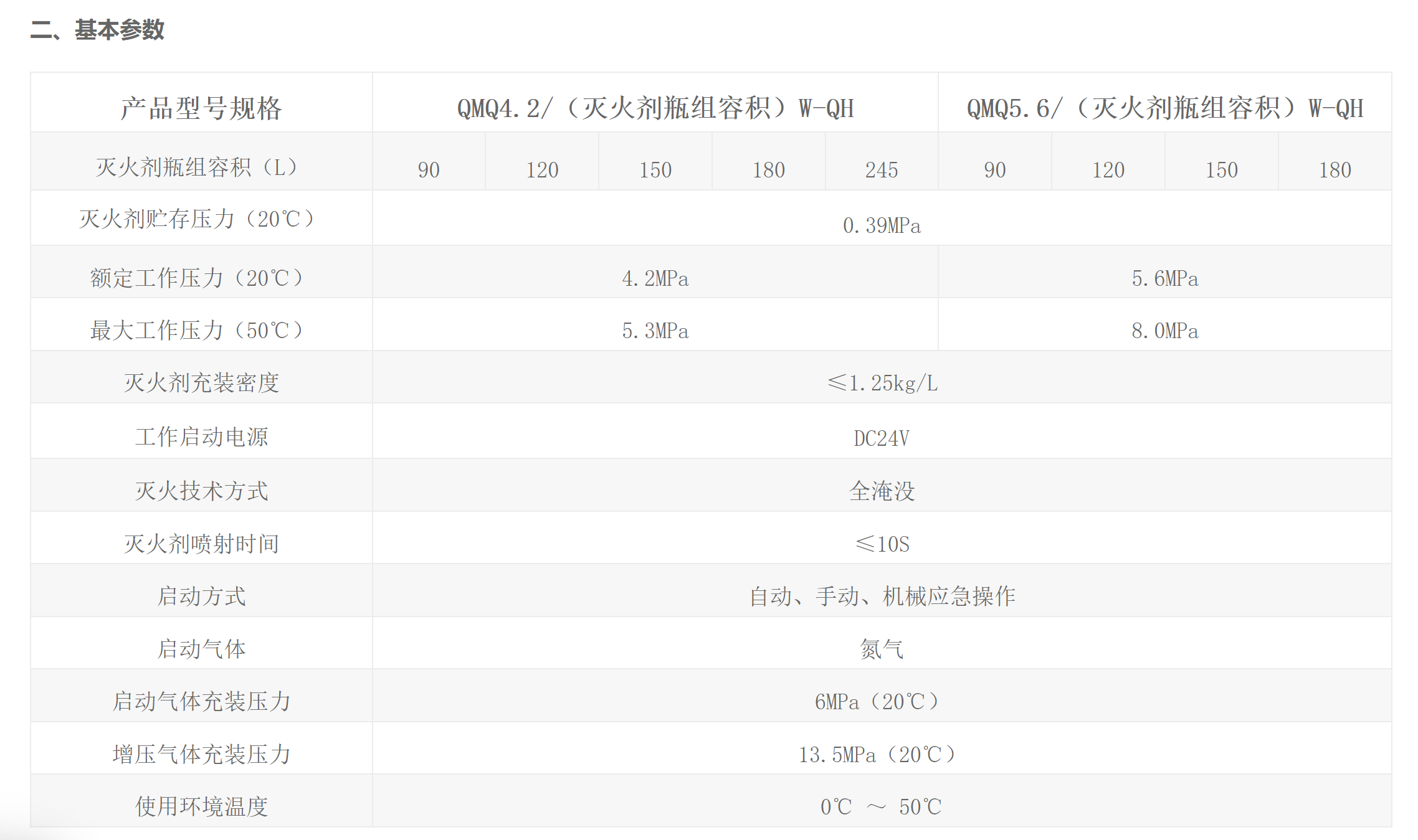管网七氟丙烷灭火系统型号表示:如 QMQ4.2/90N-QH。