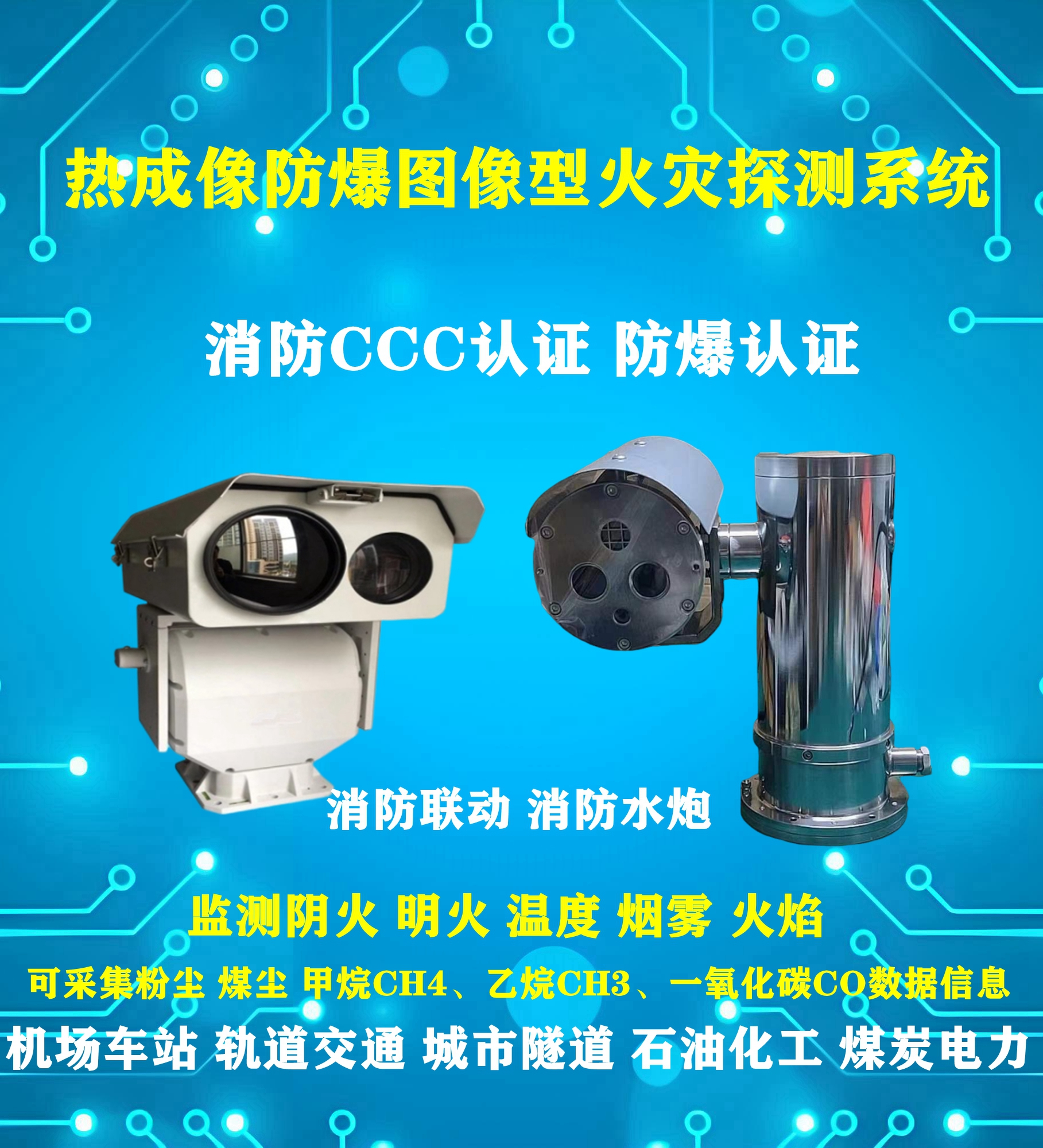 极早期防爆热成像三光图像型火灾报警系统在航空航天、枢纽机场及轨道交通领域具有显著的应用价值和优势。以下是对该系统在这些领域中应用的详细分析: 一、航空航天领域 在航空航天领域,火灾探测和报警系统的可靠性至关重要。极早期防爆热成像三光图像型火灾报警系统能够提供高精度、实时的火灾监测,确保航空航天设施的安全。 应用背景: 航空航天设施通常包含大量易燃材料和高价值设备。 火灾一旦发生,可能迅速蔓延并造成严重后果。 系统优势: 早期预警:通过热成像技术,系统能够在火灾初期阶段探测到微小的温度变化,及时发出警报。 三光图像技术:结合可见光、红外和紫外等多种光谱信息,提高火灾探测的准确性和灵敏度。 防爆设计:适应航空航天领域可能存在的易燃易爆环境,确保系统安全运行。 实际应用: 监测航空航天设施的各个关键区域,如发动机舱、燃料储存区等。 与消防系统联动,实现自动灭火或启动应急预案等功能。 二、枢纽机场领域 在枢纽机场,火灾探测和报警系统的及时性对于保障人员和财产安全至关重要。极早期防爆热成像三光图像型火灾报警系统能够提供全天候、全方位的火灾监测。 应用背景: 机场内包含大量易燃材料,如燃油、航空器材等。 人员密集,火灾一旦发生,可能迅速蔓延并造成严重后果。 系统优势: 全天候监测:不受天气和光照条件限制,能够全天候提供火灾监测。 穿透烟雾能力:热成像技术能够穿透烟雾,发现隐藏在视线盲区内的火源。 智能分析:通过图像分析技术,自动识别火焰、烟雾等火灾特征,减少误报和漏报。 实际应用: 监测机场的停机坪、候机楼、行李处理系统等关键区域。 与机场消防系统联动,实现快速响应和灭火。 三、轨道交通领域 在轨道交通领域,火灾探测和报警系统的稳定性和可靠性对于保障列车运行安全和乘客生命安全至关重要。极早期防爆热成像三光图像型火灾报警系统能够提供高精度的火灾监测和报警功能。 应用背景: 轨道交通设施包含大量电气设备和高价值设备。 火灾一旦发生,可能迅速蔓延并影响列车运行安全。 系统优势: 高精度测温:通过热成像技术,实时监测设备温度变化,及时发现异常。 防爆设计:适应轨道交通领域可能存在的易燃易爆环境,确保系统安全运行。 远程监控:通过远程监控中心,实现远程监控和报警功能,方便管理人员实时掌握火灾情况。 实际应用: 监测轨道交通的列车车厢、变电站、隧道等关键区域。 与轨道交通消防系统联动,实现快速响应和灭火。同时,该系统还可以与轨道交通的信号系统进行联动,确保在火灾发生时能够及时停车并疏散乘客。 综上所述,极早期防爆热成像三光图像型火灾报警系统在航空航天、枢纽机场及轨道交通领域具有显著的应用价值和优势。该系统能够提供高精度、实时的火灾监测和报警功能,确保这些领域的安全运行。